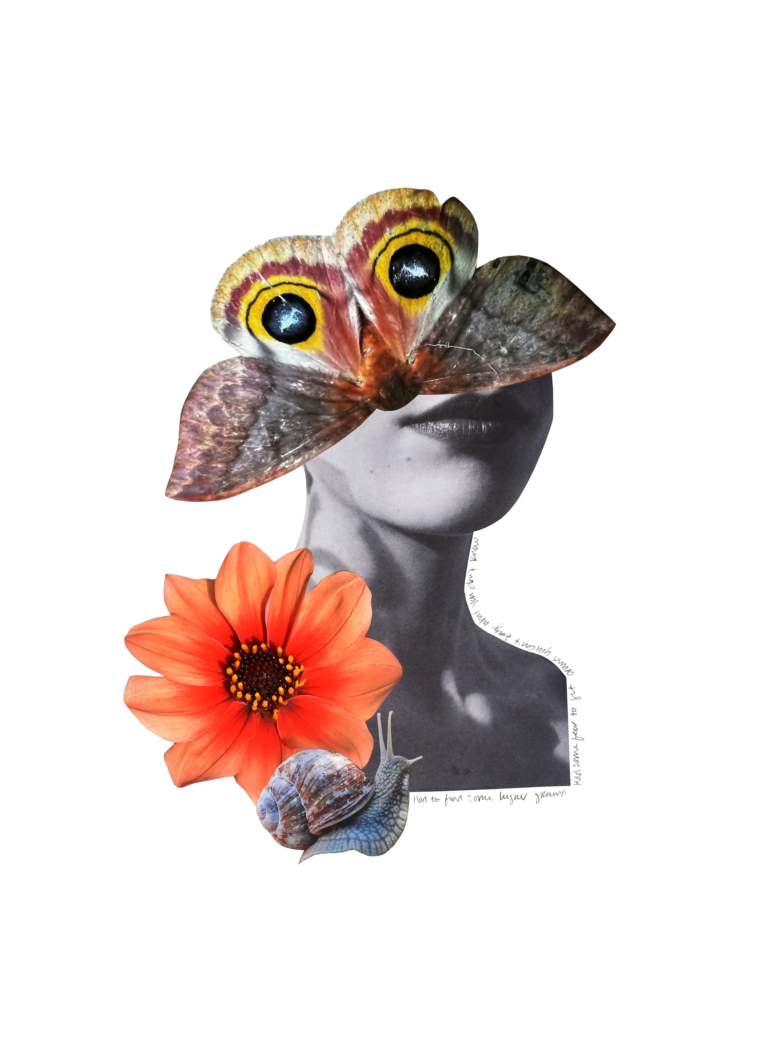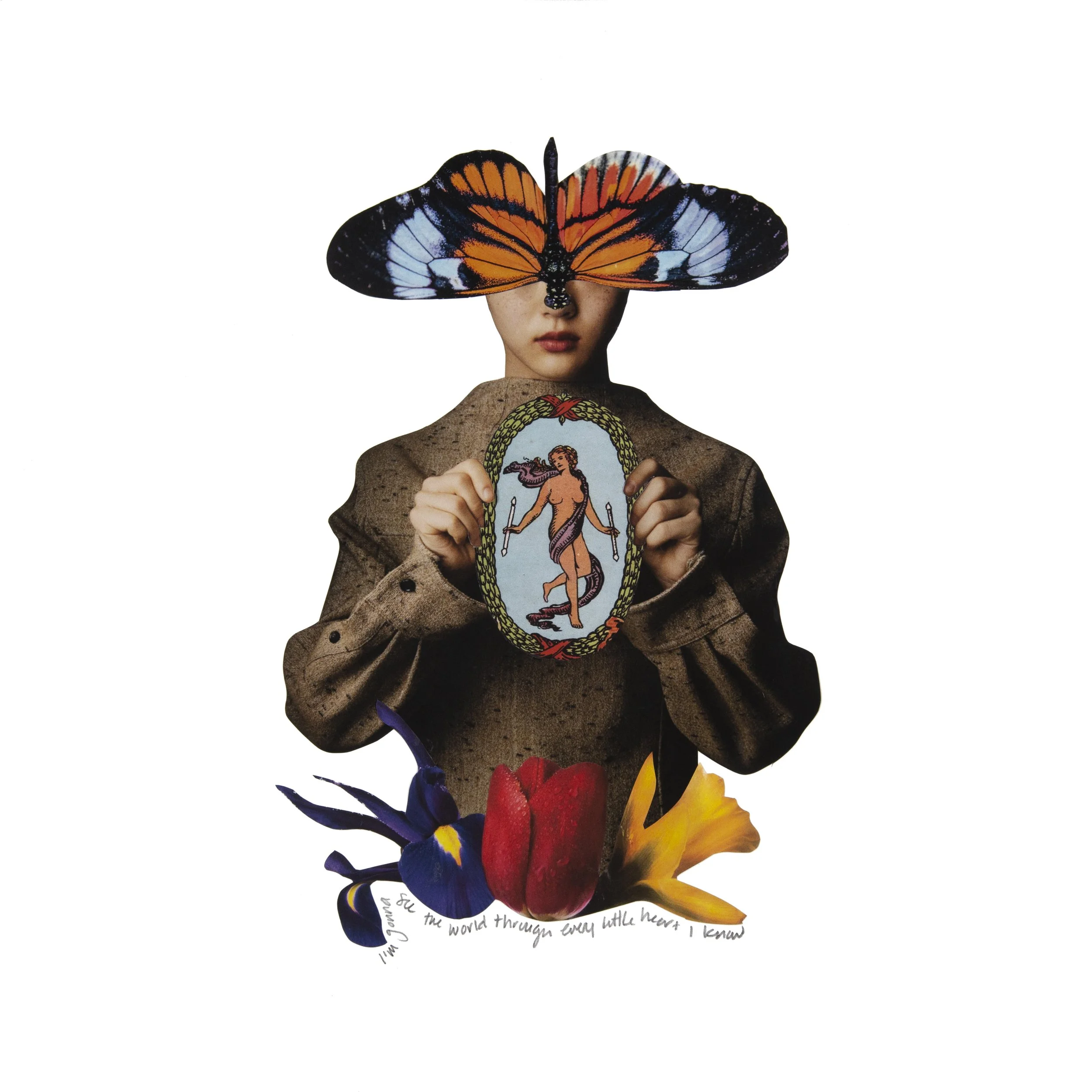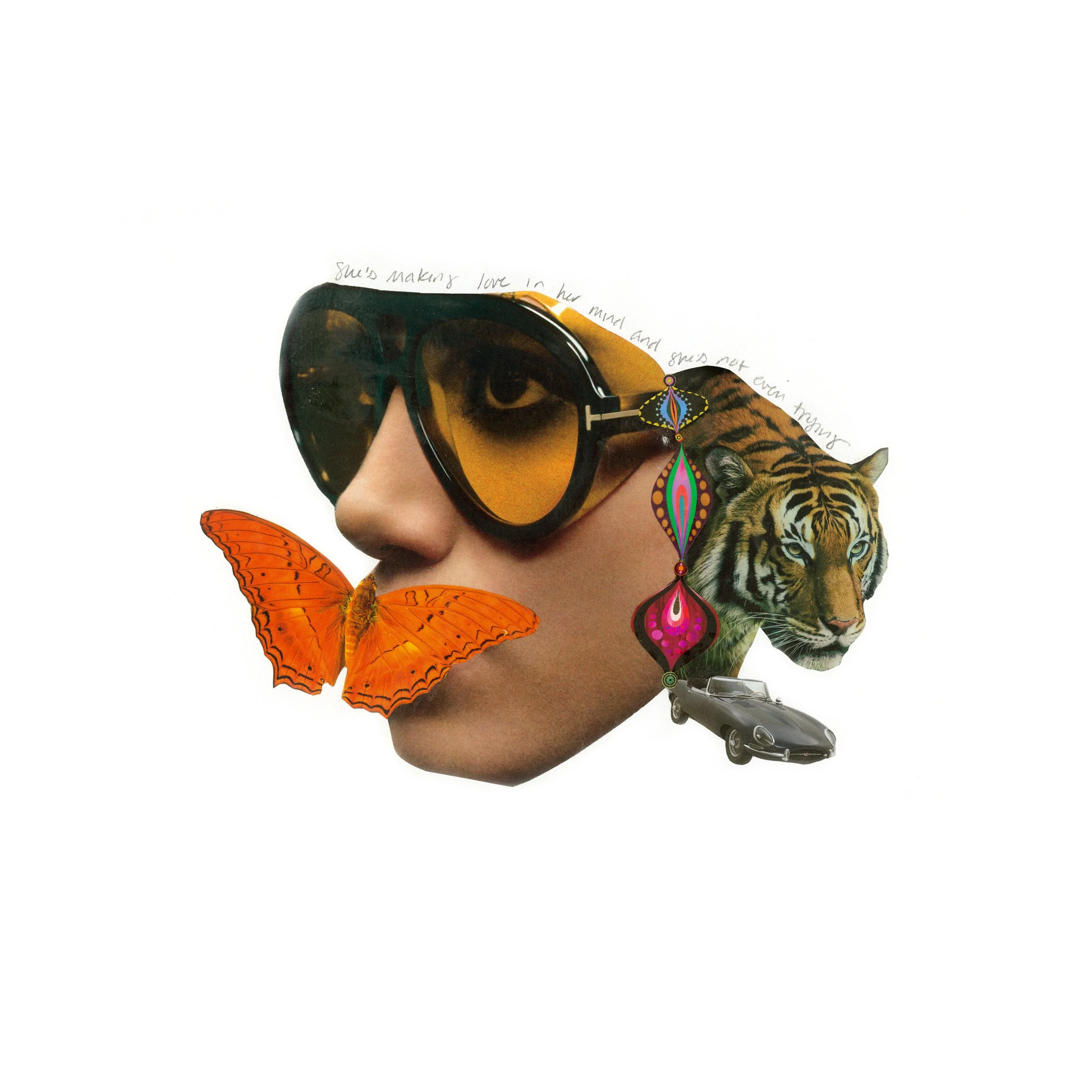 Hand-cut collage using found images from independent fashion magazines, scientific journals, tarot, and vintage advertisements.