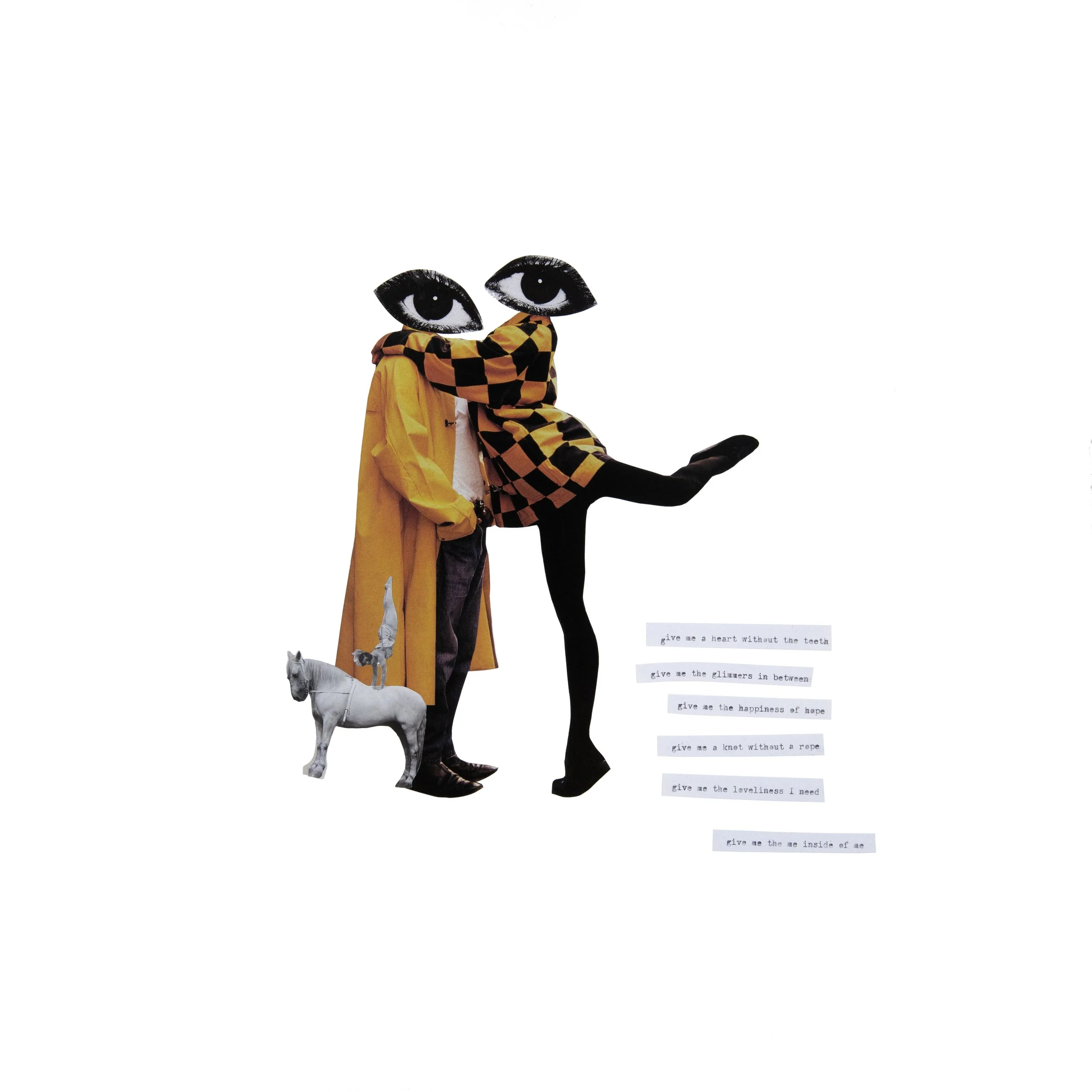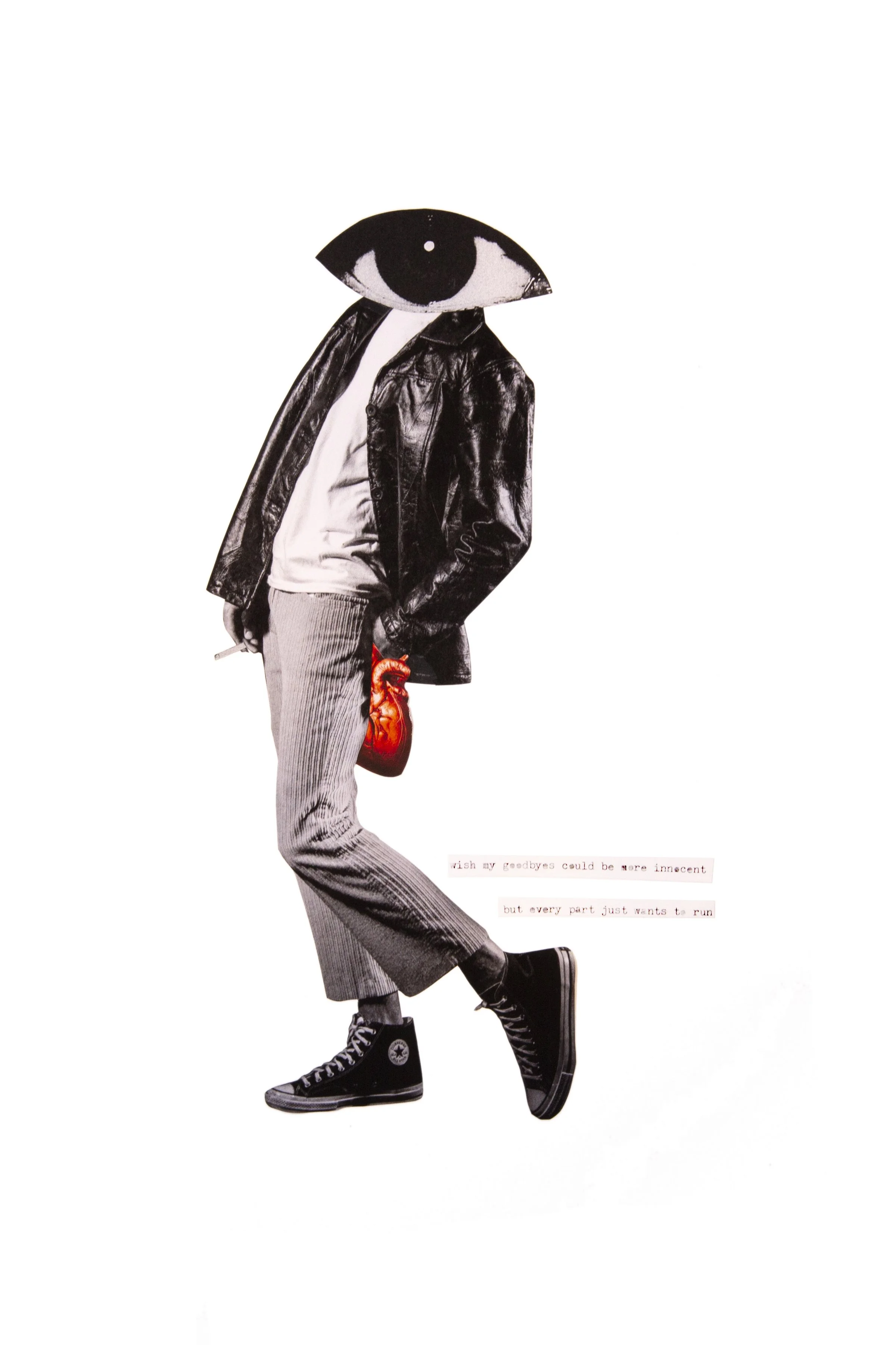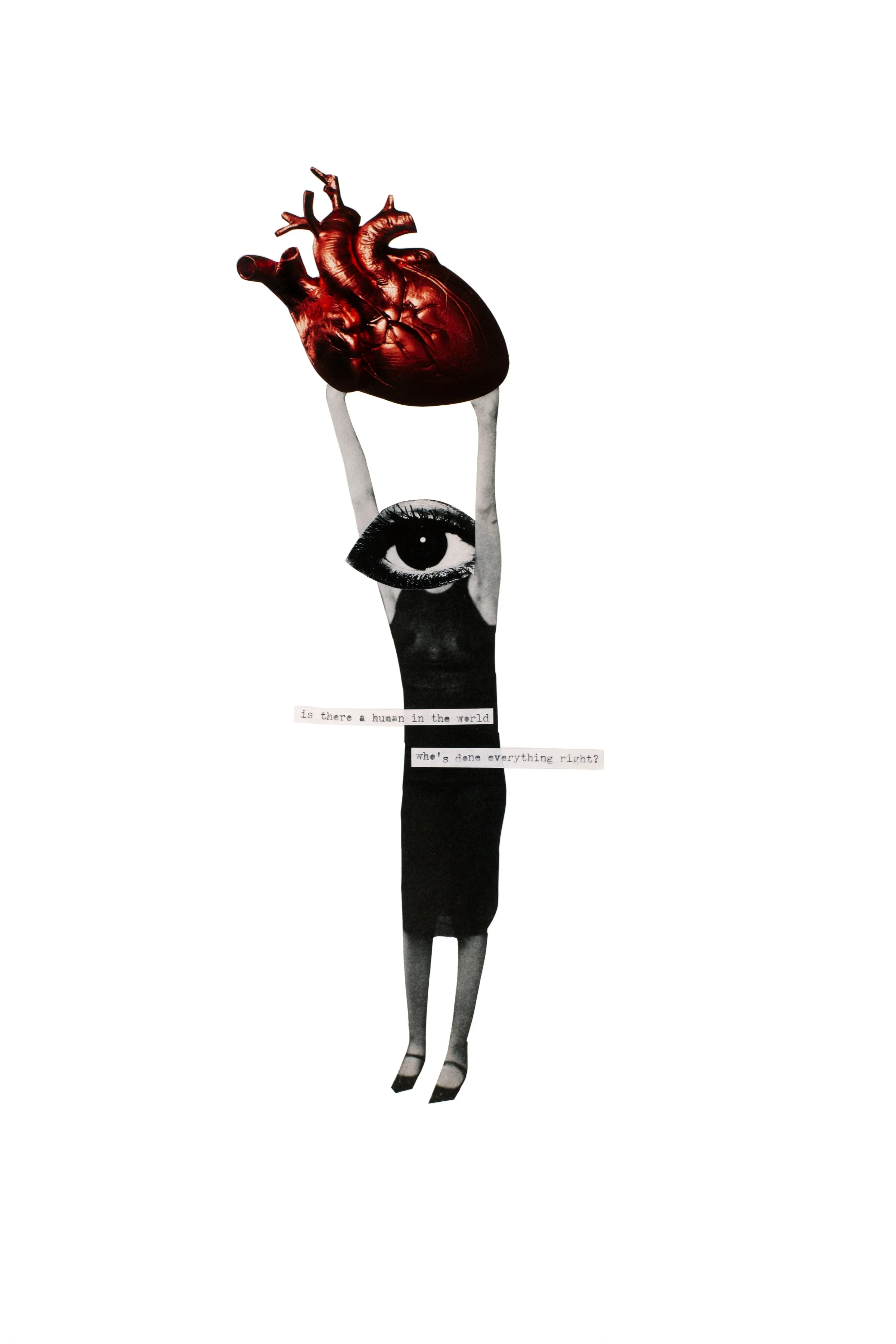 Each piece is a hand-cut collage made from found imagery—sourced from independent fashion magazines, vintage advertisements, and overlooked corners of stock photo archives. Like the emotions they reflect, these works are stitched from contradiction: bold and tender, anonymous and deeply personal.