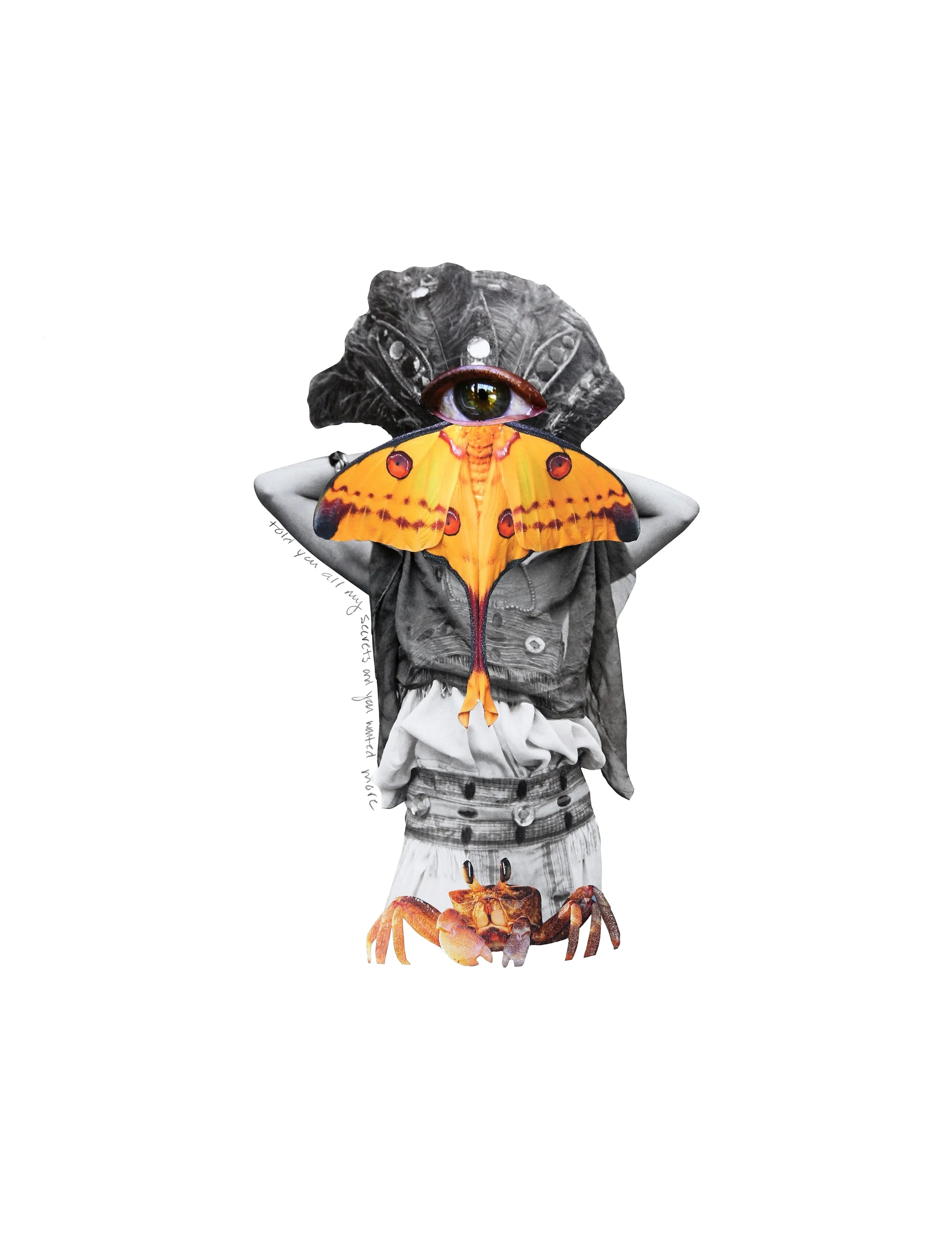 Hand-cut from art books, independent fashion magazines, scientific journals, and my own photography, the objects I select carry symbolic weight—sometimes as private references, sometimes as intuitive flashes that emerge in the act of making. Song lyrics weave through the pieces as emotional narrators, giving voice to feelings I could not speak aloud.