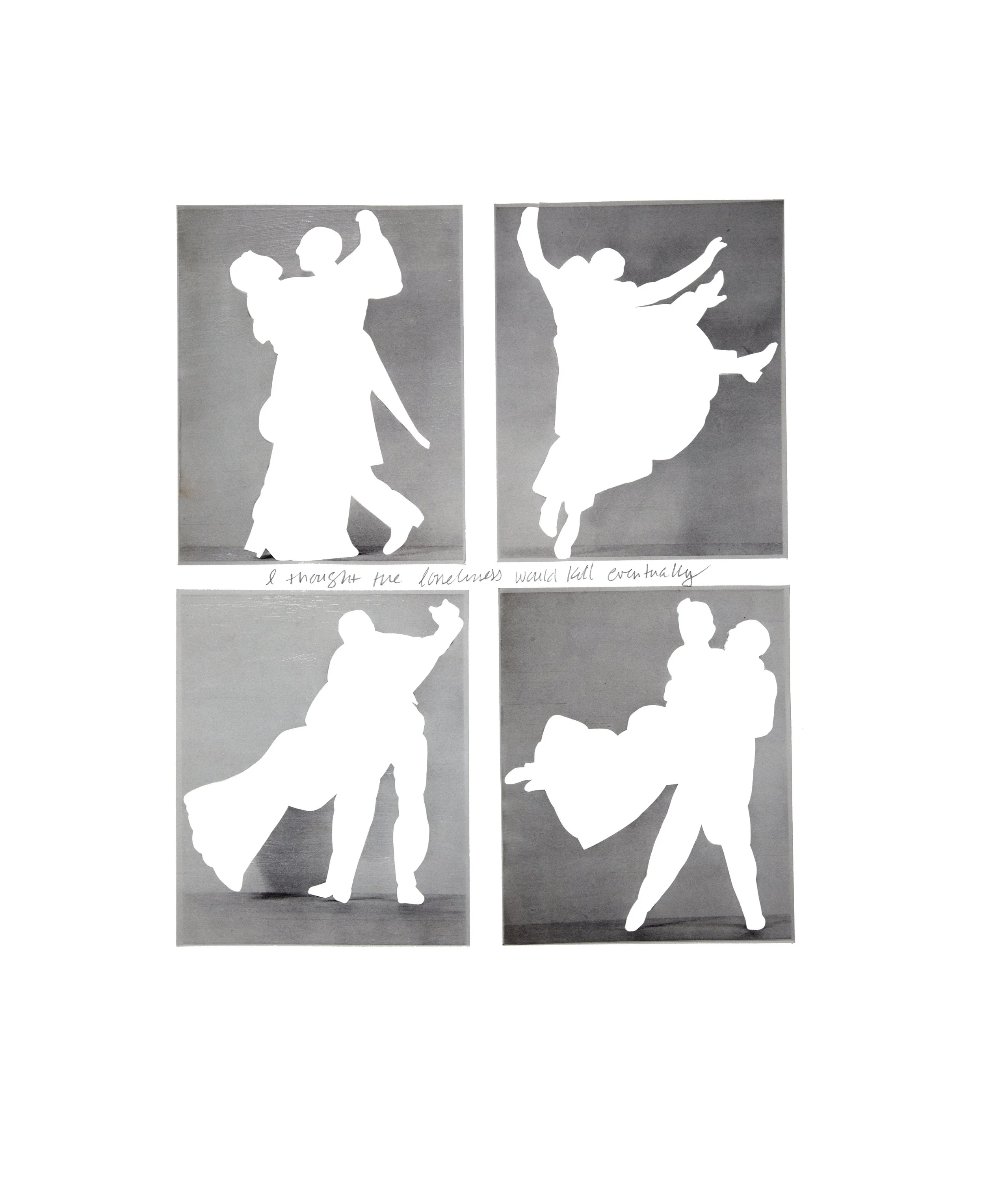 Unspoken Fragments explores grief and longing through analog collage, using unexpected juxtapositions, negative space, and fragments of song lyrics—echoes of memory and the things left unsaid.